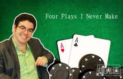 德州扑克中有一条好法则——绝不说“从不”。如果你从不做某件事,你的行动就你容易被对手预测。与此同时,我时常看到牌手们采用一些其实应该从不采用的玩法。为了简化我的策略,我尽量回避这些玩法的一部分。而另一些玩法我从不采用,因为我认为它们是错误的。以下是我从不采用的四种常见玩法。