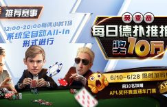 【EV扑克(www.evp86.com)报道】 EV扑克APL每日德扑推推乐奖10万 总奖励: 10W 开赛时…