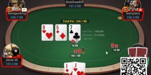 答:不是说不能推allin,而是我觉得bet正常size EV更高。这个EV来自哪里?主要来自买小花的组合。前者是MP 3BB的open call了BTN的3bet,后者是BTN 2BB的open call了SB的3bet。前者相对来说,买花比较少,就算有JTs这种牌,也call不了一个正常的bet。后者买花比较多,而且在有足够的隐藏赔率(implied odds)并且有位置的情况下,很少有人会推allin来搏命。如果花没买到,有可能A high河牌直接开牌能赢——不是每个人都会用爆掉的买花去bluff的,尤其后手已经不多了。