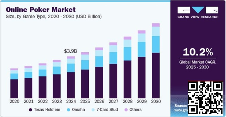 2024年,全球线上扑克市场规模达到38.6亿美元,预计到2030年将攀升至69亿美元,2025至2030年间年均复合增长率达到10.2%。